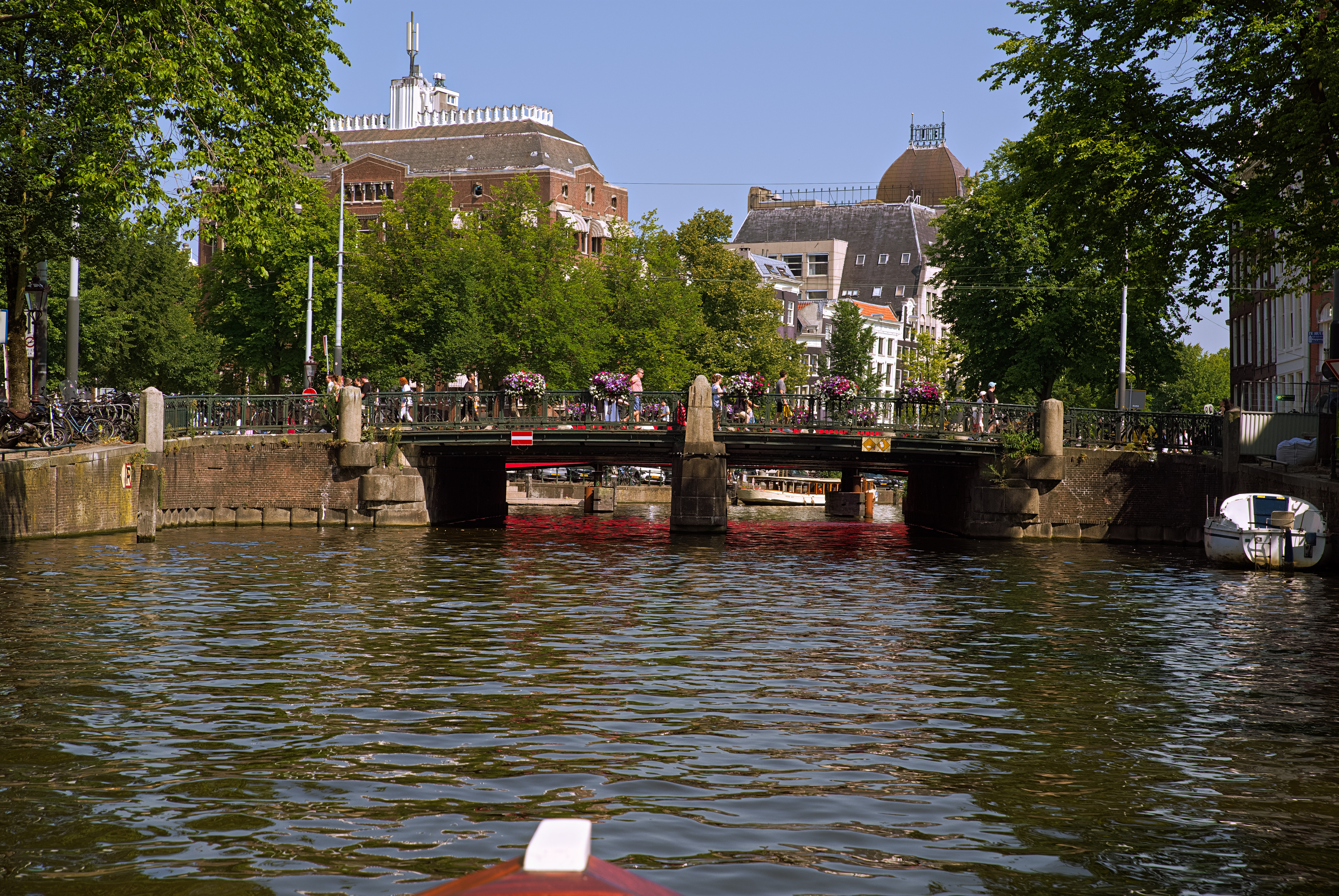 Anders dan andere steden is Amsterdam bezaaid met woonboten. Daar liggen er zo’n 2.500 van. Behalve het enorme aantal valt daarvan ook de zeer uiteenlopende staat van onderhoud op. Wat je er ook van vindt, het geeft de grachten in elk geval een geheel eigen sfeer. Als je vanaf het Westerdok de Brouwersgracht opvaart, kun je elk van de hoofdgrachten op. De Brouwersgracht zelf is meteen een ontzettend mooie gracht. Daaraan draagt de overwegend uitstekende staat van onderhoud van de grachtenpanden bij. Je ervaart hier ook meteen het typische stadsgezicht van onze hoofdstad : boogbruggen met fietsen erop. Volgens buitenlanders is dat ‘typically Dutch’. Welke van de grachten je vervolgens ook opdraait, ze zijn altijd fraai. Om er één met de draai mee af te varen ben je minstens een halfuur bezig. Je komt dan altijd op de Amstel.
