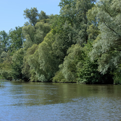 We varen via de Biesboschsluis in Werkendam de Brabantsche Biesbosch in, het Steurgat op. Betrekkelijk vroeg in de morgen is Inge aan boord gestapt. Ze komt uit Drimmelen, kent het gebied goed en is een fervent natuurliefhebber. Ze ziet onze sloep voor het eerst en is aangenaam verrast door de hybride aandrijving : 'Die elektromotor gaat nog van pas komen vandaag, let maar op!'. Op onze vraag of we vandaag bevers gaan zien moet ze grinniken : 'Het heeft geen zin te gaan zitten turen. Als je een bever tegenkomt is die echt niet te missen!'. En over de kans op een ontmoeting overdag : 'Daar zou ik maar niet vanuit gaan. Ze worden pas weer aan het eind van de dag actief'. We doen net alsof we niet teleurgesteld zijn. Eigenwijs blijven we natuurlijk toch - een beetje sluiks, dat wel - naar de oevers turen, wie weet …
