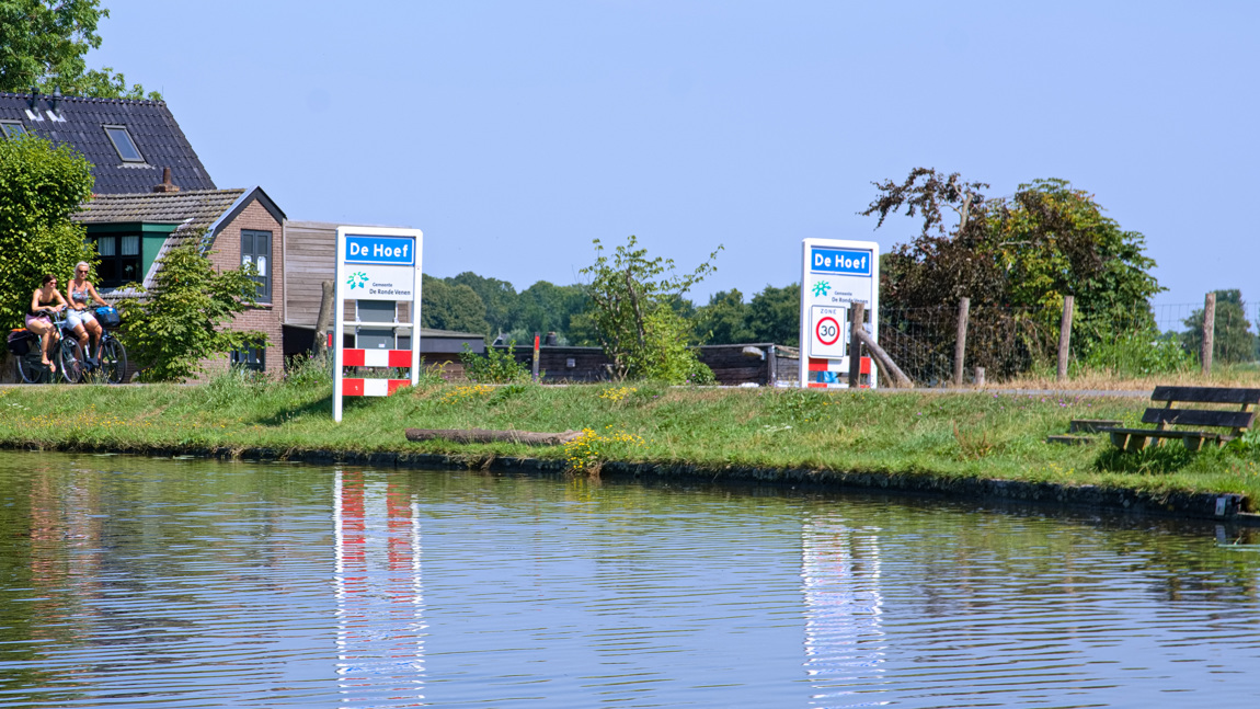 We kiezen voor de rest van de route de Kromme Mijdrecht en de Kerkvaart. Vooral de eerste doet op veel plaatsen qua natuurschoon niet onder voor de Grecht. Het is er eigenlijk een soort van look-a-like van. De wateralmanak heeft hier ook weer een mooie typering voor: 'landschappelijk vaarwater'. Met een weg ernaast en met iets meer bebouwing is het inderdaad minder 'eenzaam' dan de Grecht. Maar het blijft wel een prachtige vaarweg. We bereiken na verloop van tijd het bungalowpark Zomerlust. Daar is een opvallende dubbele fietsbrug aangelegd, waar we in het midden gemakkelijk onderdoor varen. Na nog een prachtig stuk vaarweg komen we door het plaatsje De Hoef. Het is rond lunchtijd en de aanlegsteiger bij een terras ziet er zo aantrekkelijk uit dat we de verleiding niet kunnen weerstaan.