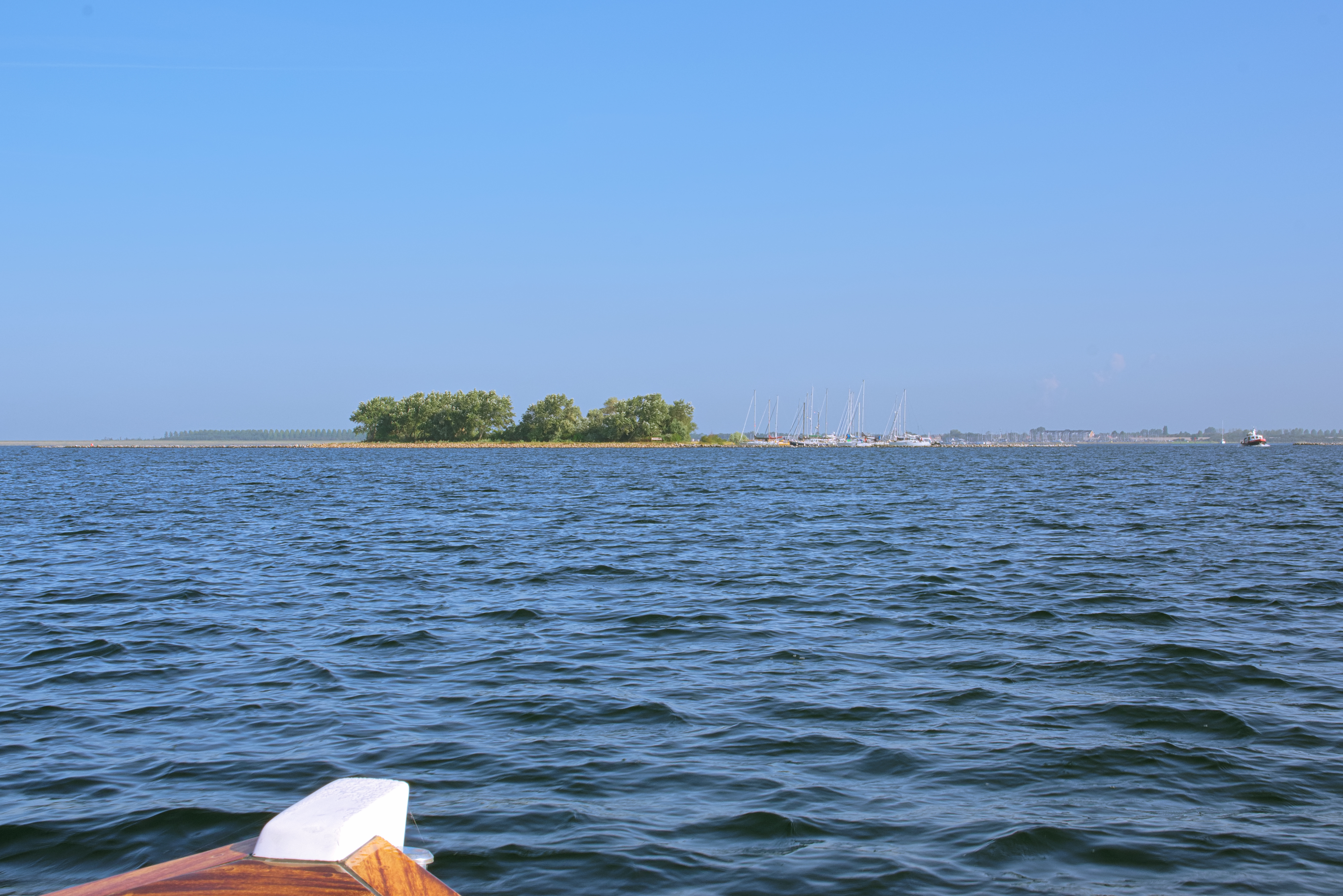Meteen na de sluis heb je aan bakboord de jachthaven Bruinisse. We gaan er even kijken en stellen vast dat zeilboten hier de overgrote meerderheid van het botenbestand vormen. We verlaten de jachthaven en varen het meer op. Als ik haar naar de reden van haar voorkeur voor dit vaarwater ten opzichte van het Haringvliet vraag, heeft Gabriëla niet veel woorden nodig: ‘Je hebt hier zout water en dus geen muggen en geen blauwalg. Daardoor heb je helder water waar je goed in kunt zwemmen. En je hebt meerdere eilandjes waar je kunt aanleggen. Dat maakt het hier een stuk leuker dan op zoet water!’.
