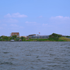 Tegenover het Muiderslot hebben we de Koninklijke Nederlandsche Zeil-en Roeivereeniging, waarvan prinses Beatrix de beschermvrouwe is. Leden van deze vereniging mogen – samen met de leden van Koninklijke Roei-en Zeilvereniging De Maas – als enigen een toevoeging aan de Nederlandse vlag voeren. Voor de leden van de KNZ&RV is dat een kroon boven een gestileerde ‘W’.
