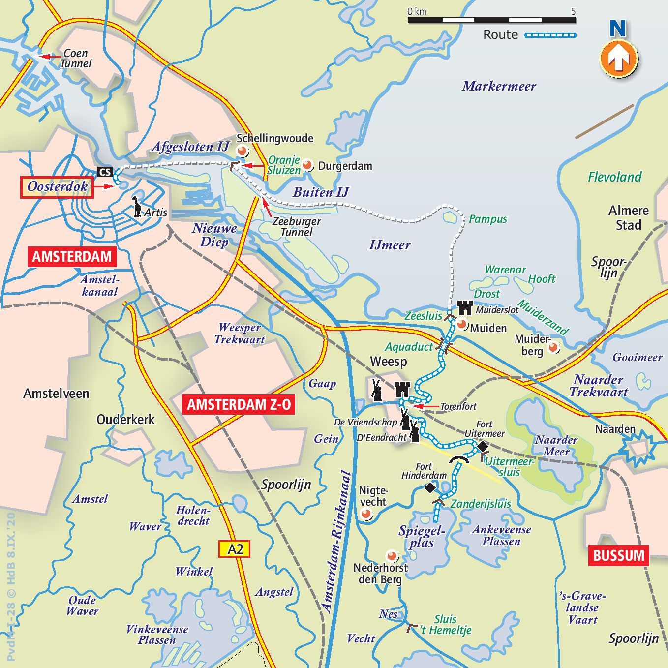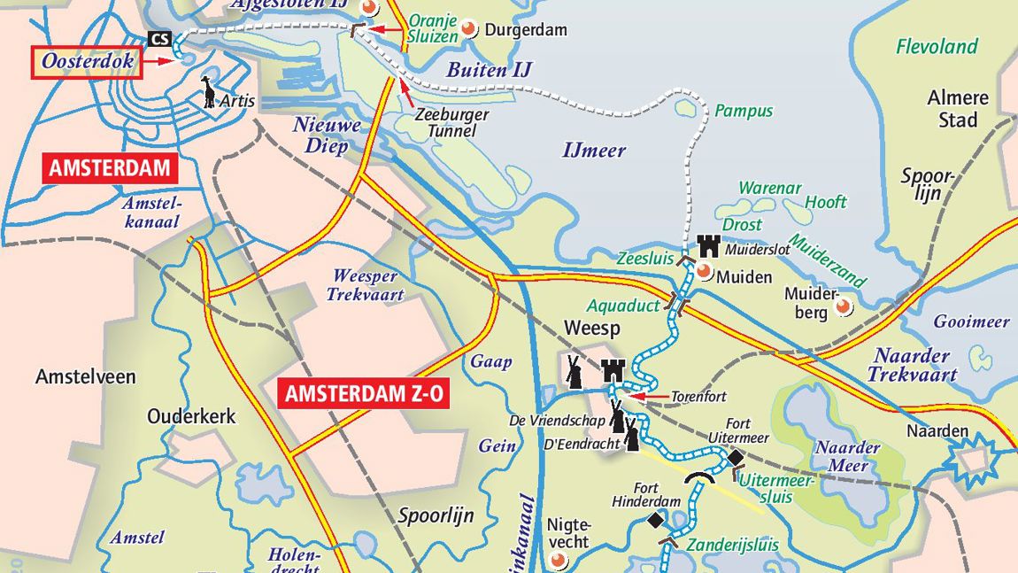 We varen van Weesp naar Muiden, onderweg genietend van hetgeen de Vecht ook op dit stukje nog te bieden heeft. Daarbij voert de vaarweg over de A1 over het breedste aquaduct van Europa. Het aquaduct heet ‘Veldzicht’ naar een boerderij die ervoor heeft moeten wijken. In Muiden varen we door naar de sluis die nog altijd wordt aangeduid als 'Groote Zeesluis'.