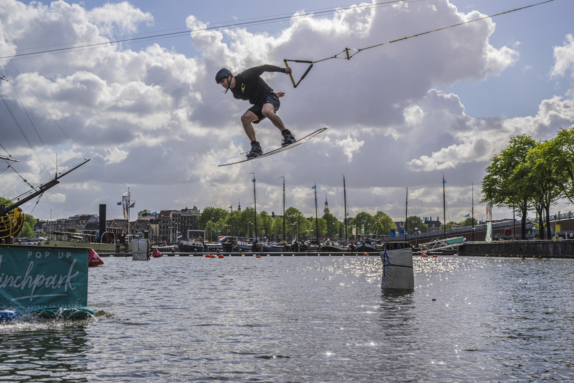 Op de Dutch Water Week selecteren we iedere dag de vijf mooiste foto’s van de diverse programmaonderdelen. Dat kan van alles zijn. Prijsuitreiking, publiek, een olympische sporter die aan het trainen is, een wakeboardend jongetje op het Marineterrein Amsterdam, of met tegenlicht gefotografeerde gestalten bij de supclinic. Wat mij opvalt aan het evenement, dat wordt gehouden op het water bij Amsterdam en Almere, zijn kanten van de watersport die je normaal gesproken niet zo snel ziet. Bijna filmisch, in het bij vlagen overweldigende stadsdecor.