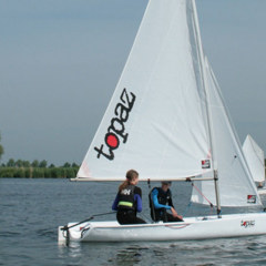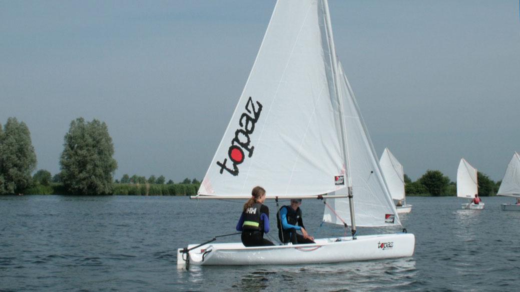 ‘Als vereniging beschikken we over negen Optimisten en drie Topazen, waar je ook met twee personen in kunt varen. De Topaz is geschikt voor kinderen vanaf 12, of jongere kinderen in bezit van een CWO II diploma in de Optimist. We hebben ongeveer een jaar geleden onze drie Laser Pico’s ingeruild voor de Topaz. Voordat we de overstap gingen maken, hebben we bij andere zeilscholen geïnventariseerd waar de jeugd bij hen enthousiast van werd. En de bouwer van de Topaz zit hier in de buurt, dus dat maakte de aanschaf erg laagdrempelig.’