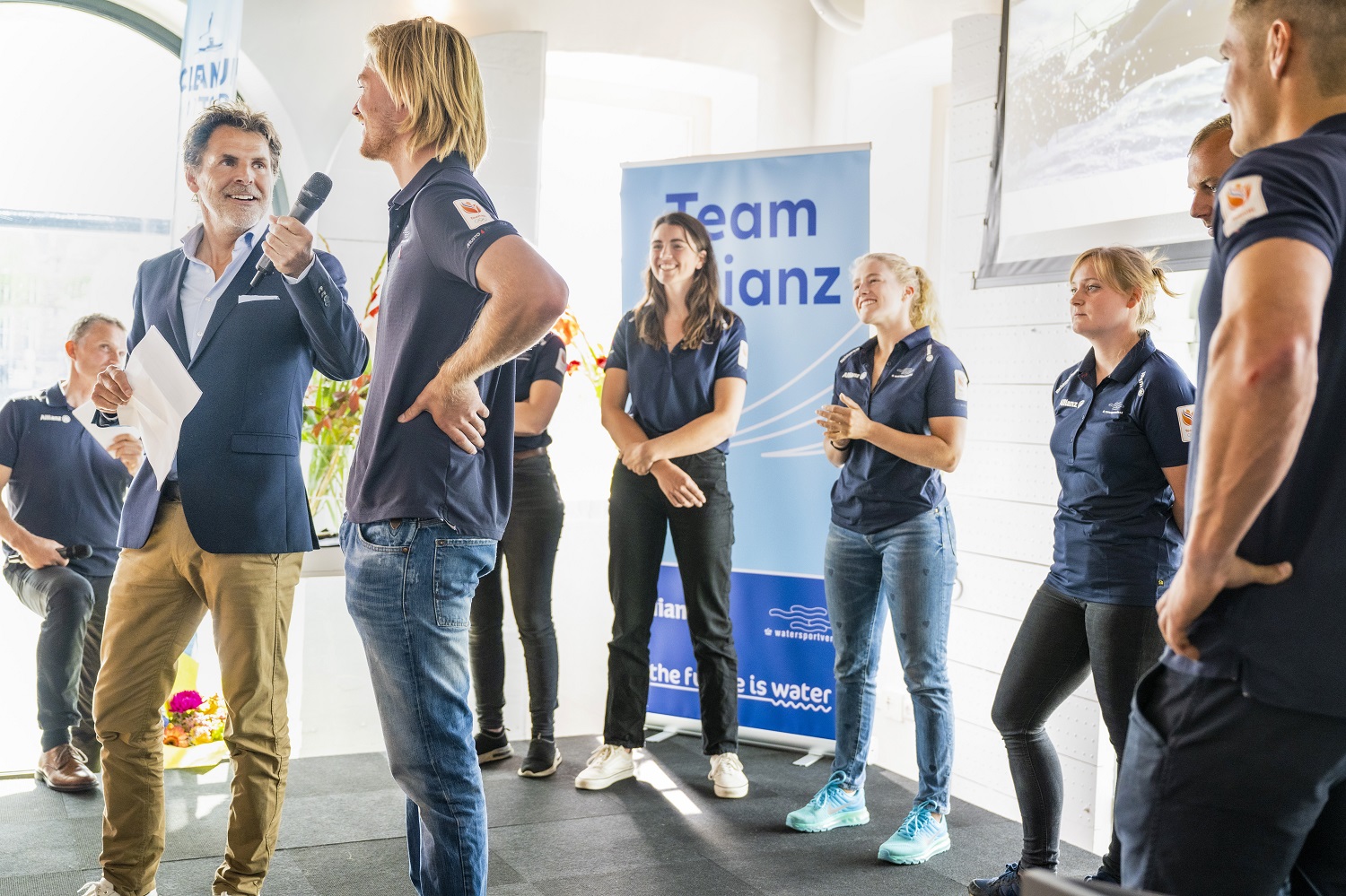 Tijdens de opening van Dutch Water Week werd ook de nationale selectie van het Watersportverbond, TeamAllianz, gepresenteerd. Na de Olympische Spelen van 2021 is bondscoach Jaap Zielhuis met het team gestart aan de campagne voor Parijs 2024. Dat gaat niet zonder uitdagingen, vertelde hij: “We hebben maar drie jaar, nu nog twee, tot de Spelen van Parijs. Vergeleken met Tokio is er veel veranderd, zo zijn nu vijf van de tien klassen foilend waardoor we nieuwe klassen hebben toegevoegd en afscheid hebben genomen van een aantal klassen en zeilers. We moeten nog vol gas geven, maar we liggen op schema.”