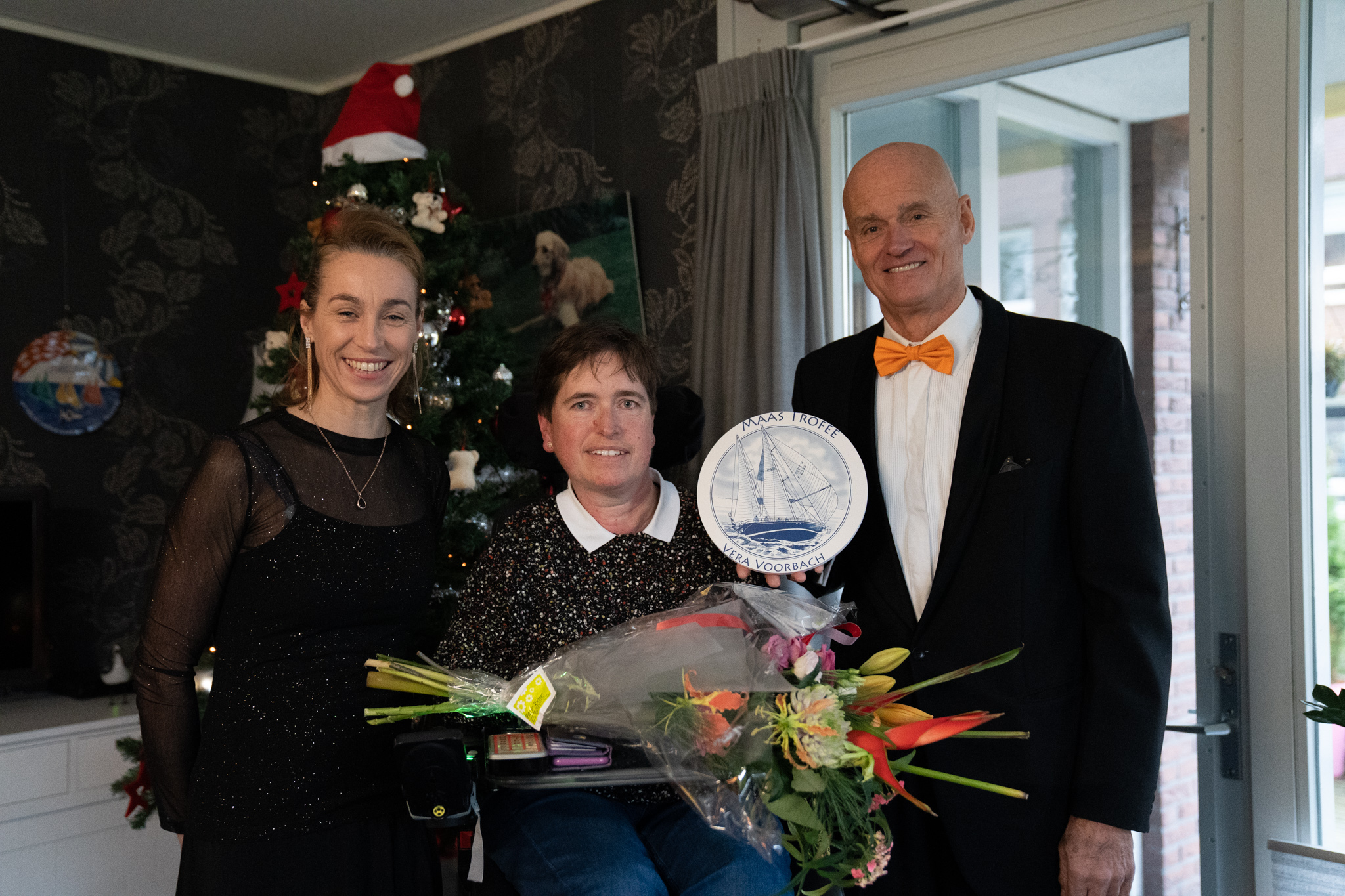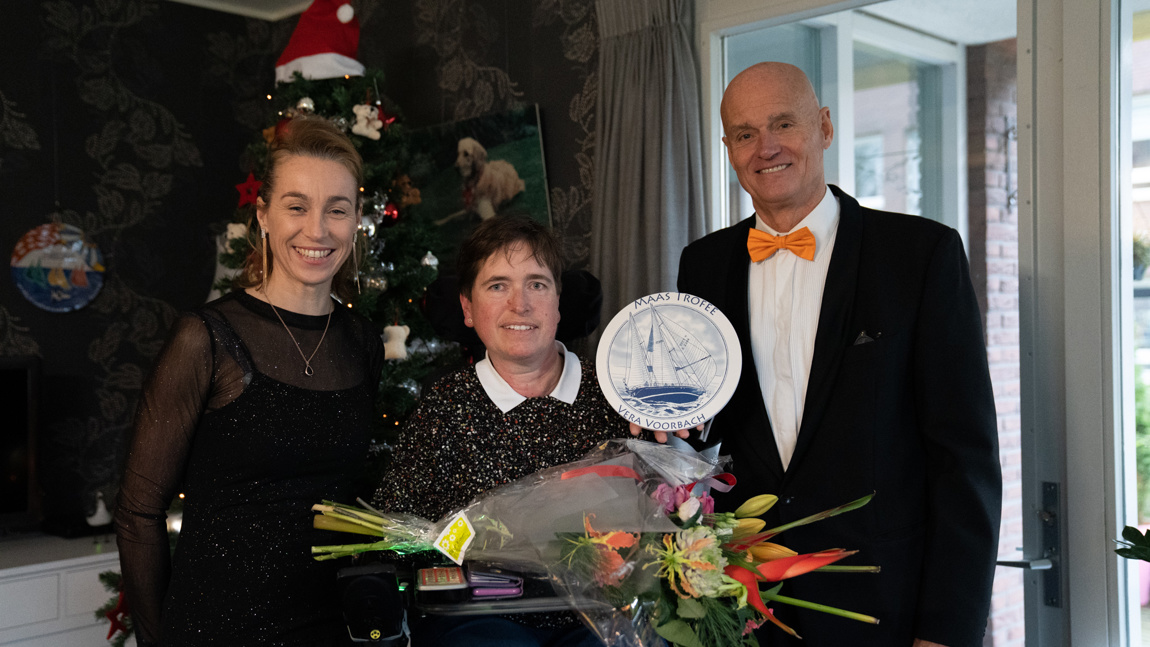 - Foto 1: Vera Voorbach (midden), winnaar Maas Trofee 2021 met presentatoren Jur Raatjes (links) en Marcelien Bos-de Koning (rechts)