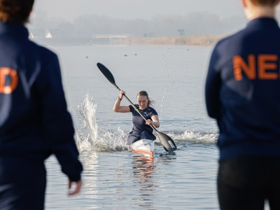 ‘Het is leerzaam dat kanoërs van verschillende disciplines meedoen aan deze opleiding. Sprint kanoërs zijn bijvoorbeeld niet bekend met het kanopolo jargon. Het maakt dan niet uit of je iemand van 10 of 30 jaar les aan het geven bent, als de uitleg niet goed is dan loopt de training niet lekker. Voor mij was het ook leuk om in een wiebelig bootje te stappen en van de sprint kajakkers te leren.’