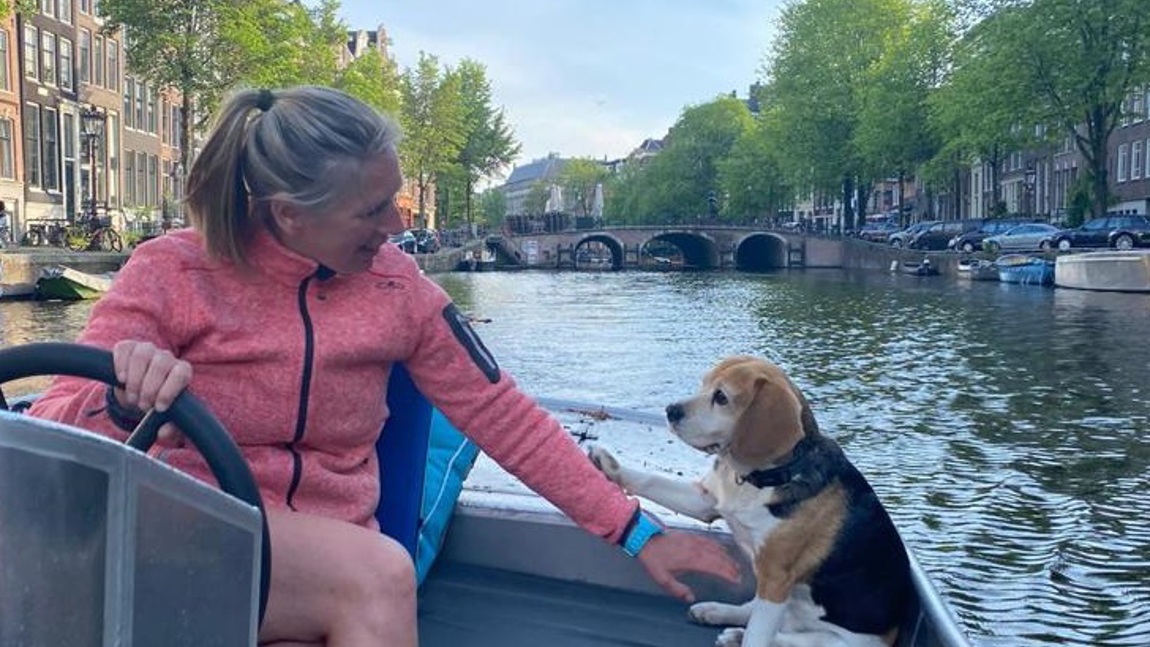 1) Ilse Jansen in haar sloep in de Amsterdamse grachten