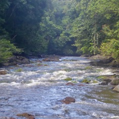 De laatste twee dagen waren er geen grote ‘vallen’ meer maar het water stroomt er niet minder om. De rivier wordt steeds kleiner en ik krijg het gevoel opgeslokt te worden door het bos. Een overweldigende gedachte dat er honderden kilometers rondom niemand is, alleen oorspronkelijk, onaangetast oerwoud.…én een graf.