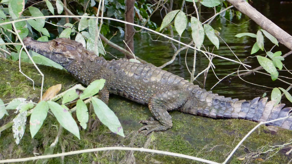 Het water is 27 OC , een tropisch zwemparadijs. Ja, er zitten piranha’s en kaaimannen maar die zullen over het algemeen voor je vluchten; daar moet je maar op vertrouwen. ’s Avonds lig ik al vroeg in de tent te luisteren naar vogels, insecten en andere oerwoudgeluiden en voel ik me net Freek Vonk: “wat een geweldige dag was het weer”. Maar de dag blijkt nog niet afgelopen. Ineens hoor ik dichtbij een ander geluid en ruik ik een sterke wildedierengeur. Ik durf me niet te verroeren, laat staan met een zaklantaarn te kijken. Later heb ik daar spijt van, het was toch een gemiste kans om een jaguar te zien.