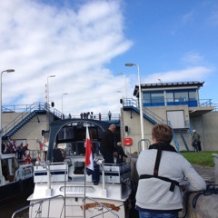 foto 2: (Tasman Graanroute) Schepen in de Getijdesluis van Termunterzijl. Via de Dollard op weg naar Nieuwe Statenzijl