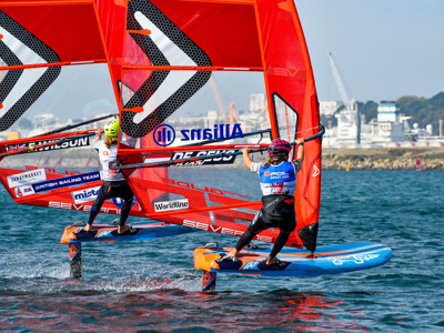 De Team Allianz surfers Luuc van Opzeeland en Huig-Jan Tak plaatsen zich als nummers twee en drie van het klassement voor de medalrace series. In de halve finale, met vier deelnemers, laten ze de Fransman Clément Bourgeois en Tom Reuveny uit Israël achter zich. Daarmee plaatst het Nederlandse duo zich voor de finale, waarin klassementsleider, de ervaren Duitser Koerdel, al zeker was van deelname.