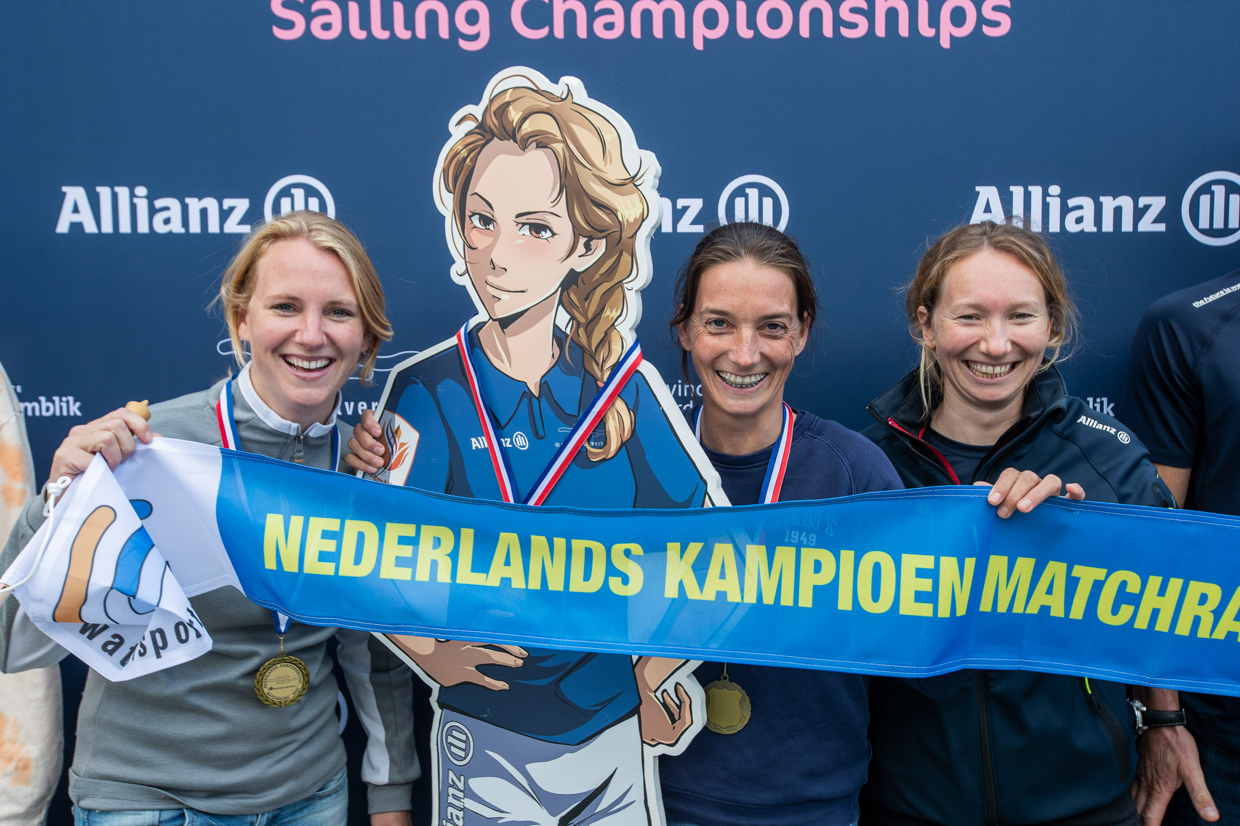 Het matchracen is een beetje een onder onsje van ervaren match racers en olympiërs. Renee Groeneveld, Lobke Berkhout, Annemiek Bekkering en Marije Kampen mogen zich een jaar lang Nederlands kampioen matchracen noemen. Dit ervaren trio weet uiteindelijk de meeste races te winnen. Met 14 wins verslaan de drie dames het geoliede matchrace team van Dirk Jan Korpershoek. Op een derde plaats eindigt het team van Bart Lambriex, die Nederland afgelopen zomer vertegenwoordigde in de 49er op de Olympische Spelen van Tokio. Voor deze gelegenheid zeilt Lambriex onder andere met zijn Engelse 49er coach Rick Peacock.