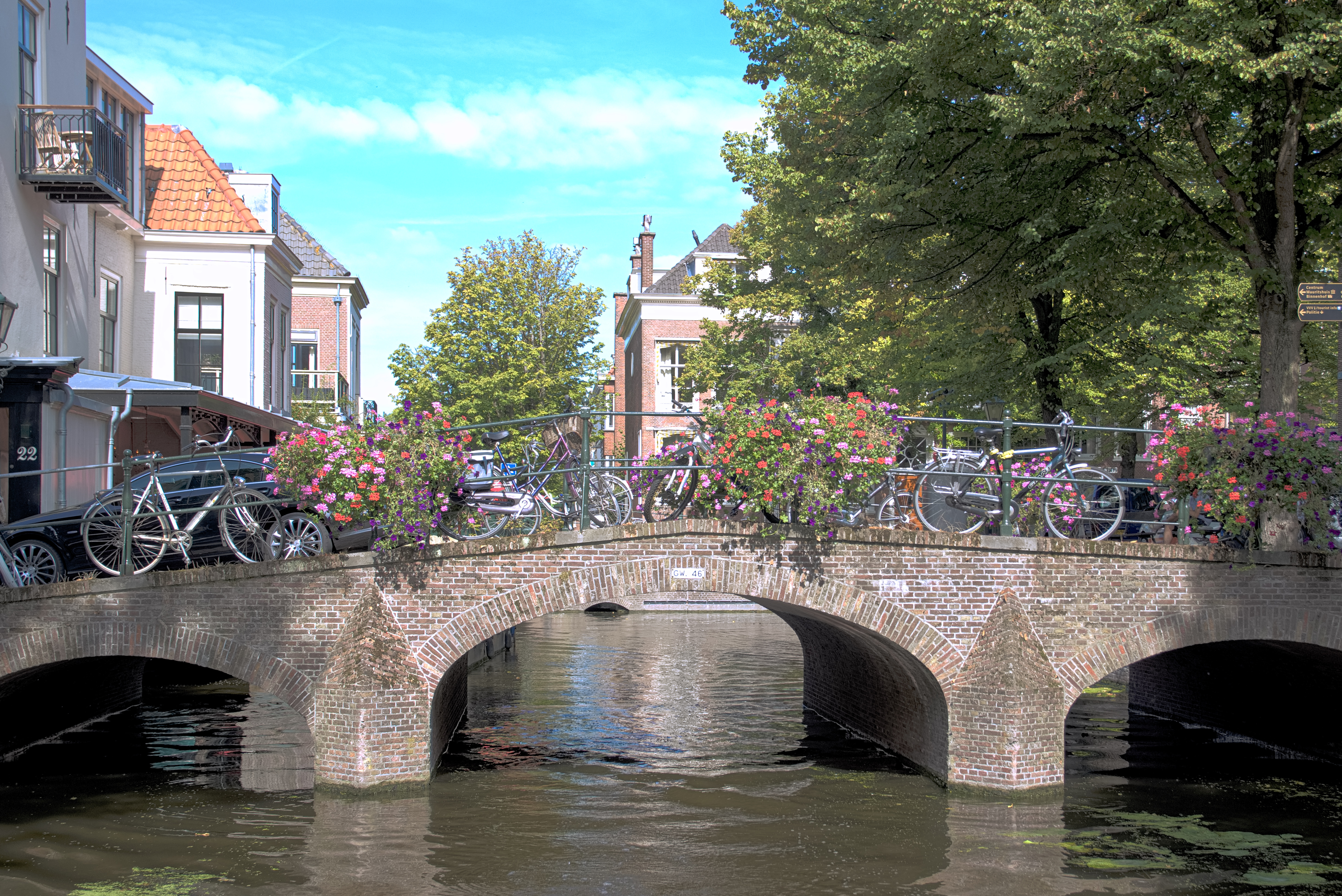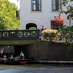 We zijn hier aan het begin van ons 'rondje stad' en zijn nu al tamelijk onder de indruk van wat Den Haag op binnenwatergebied allemaal overhoop heeft gehaald. We gaan bakboord uit naar de Bierkade. Als we daar beginnen komen we pas aan het eind van het rondje onder de laagste bruggen door. Die zijn met 0,9m erg laag en dus leuk om aan het eind te doen. We passeren eerst de passantenhaven Bierkade, waarvandaan ook rondvaartboten vertrekken. De citymarketing heeft het Bierkade-gebied met gevoel voor overstatement tot 'avenue culinaire' bestempeld. Met de Schilderswijk aan bakboord is dat misschien wat veel van het goede. Maar je treft hier wel veel eettentjes en -boten aan. Vooral uitheemse keukens, maar dat zal niet heel verrassend zijn. Na een flinke kilometer komen we met een bocht naar stuurboord op het Om en Bij, zo genoemd naar een 18e eeuws landhuis. Er zijn nu fraaie hofjes gecreëerd. Aan het eind daarvan hebben we de eerste overkluizing. Daaronder gaan we haaks bakboord uit de Houtzagerssingel op. In de verte doemt de volgende overkluizing dan ook al op. Die brengt ons op de Zoutkeetsingel. Daar ligt het – niet te missen - Westeinde ziekenhuis. We varen de Veenkade op waar we de lage en scheve Hemsterhuisstraatbrug passeren en even later de Bibliotheekbrug en de Paleisbrug. We zijn dan inmiddels aangeland op de Toussaintkade. Met de paleistuin van Paleis Noordeinde naast ons en de Koninklijke Stallen in de hoek daarvan, wordt de omgeving steeds fraaier. Als we ons omdraaien hebben we een fraai uitzicht op de Grote Kerk. We gaan er goed voor zitten want de rest van het rondje is buitengewoon aantrekkelijk.
