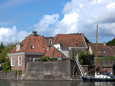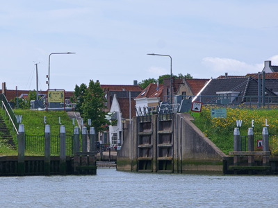 We varen urenlang het gehele meer over en kiezen een zodanige koers dat we het eiland Dwars in den weg aan stuurboord passeren. Gek genoeg hebben we van dat eiland nergens de oorsprong van de naam kunnen vinden. Nou kunnen we die vanzelfsprekend zelf ook wel bedenken : toen Brouwershaven nog een zeehaven was lag die zandbank voor de haven natuurlijk dwars in de weg. We varen door naar het havenhoofd van Brouwershaven. De havenmeesters willen aangeroepen worden op een kanaal dat onze marifoon niet machtig is. Door een luidspreker krijgen we een plaats gewezen om even aan te leggen. De entree van de haven is meer dan fraai te noemen. Met stadsrechten sinds 1403 is Brouwershaven echt een prachtig oud Zeeuws stadje. We gaan er lunchen en nemen ons voor de plaats ook nog een keer een specifiek bezoek te brengen.