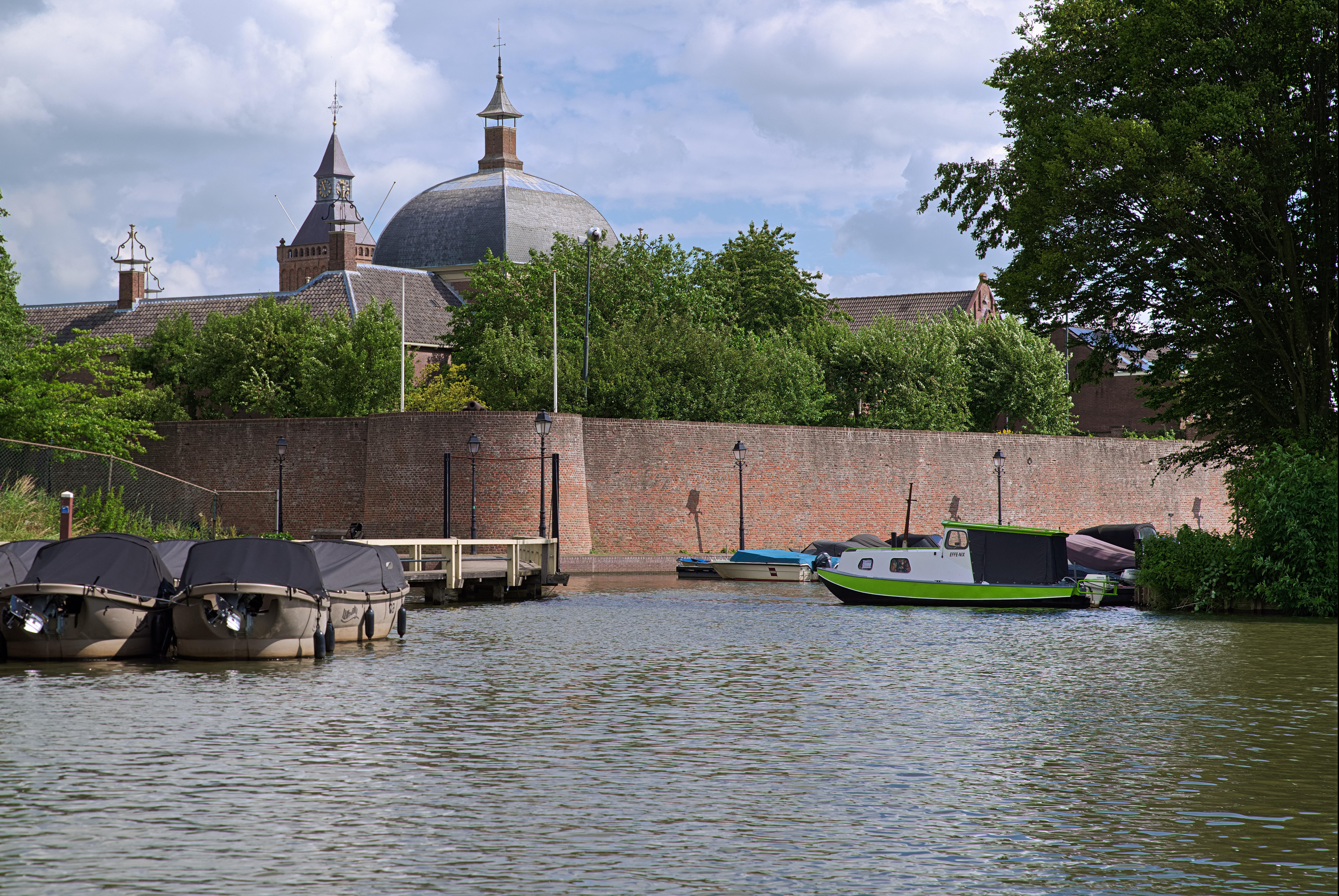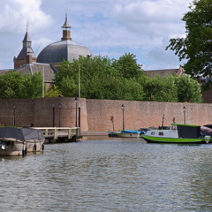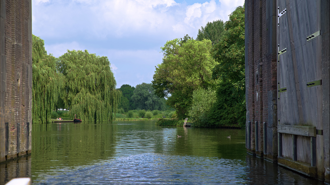 Vrijwel tegen Leerdam aan ligt Asperen. Met stadsrechten sinds 1314 en in de oudheid nog Romeinse bewoning is ook dit weer een stadje om van te watertanden. Maar wij hebben vooral oog voor het sluizencomplex. De sluizen liggen aan een soort van slingerweg en er liggen bruggen over op bijna 6 meter hoogte. Dat maakt dat de sluizen er massief en dus indrukwekkend uitzien. Ze dateren uit 1809 en zijn fraai gerestaureerd. Van oudsher waren ze ook nog uitgerust met waaiertechniek en speelden ze een rol in de Hollandse waterlinie, dus is het geen wonder dat het Rijksmonumenten zijn. We varen een paar extra rondjes om van deze bijzondere sluizen te genieten. Als we ze voldoende op ons hebben laten inwerken varen we er doorheen.